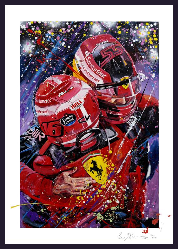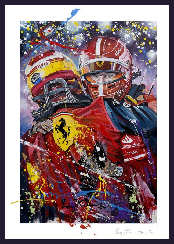 Charles Leclerc and Carlos Sainz | Victory Bahrain 1-2 | Framed Giclee